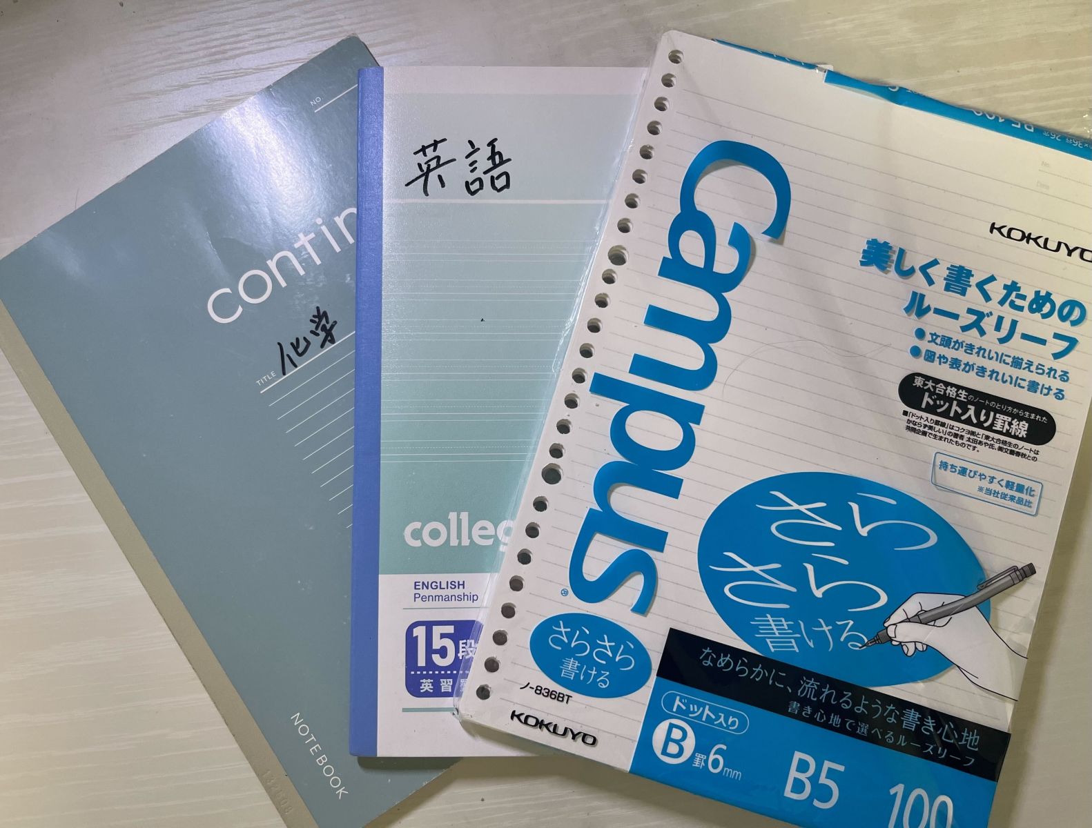 化学の授業では常に計算を行うため計算用紙用にルーズリーフを持って行きます!